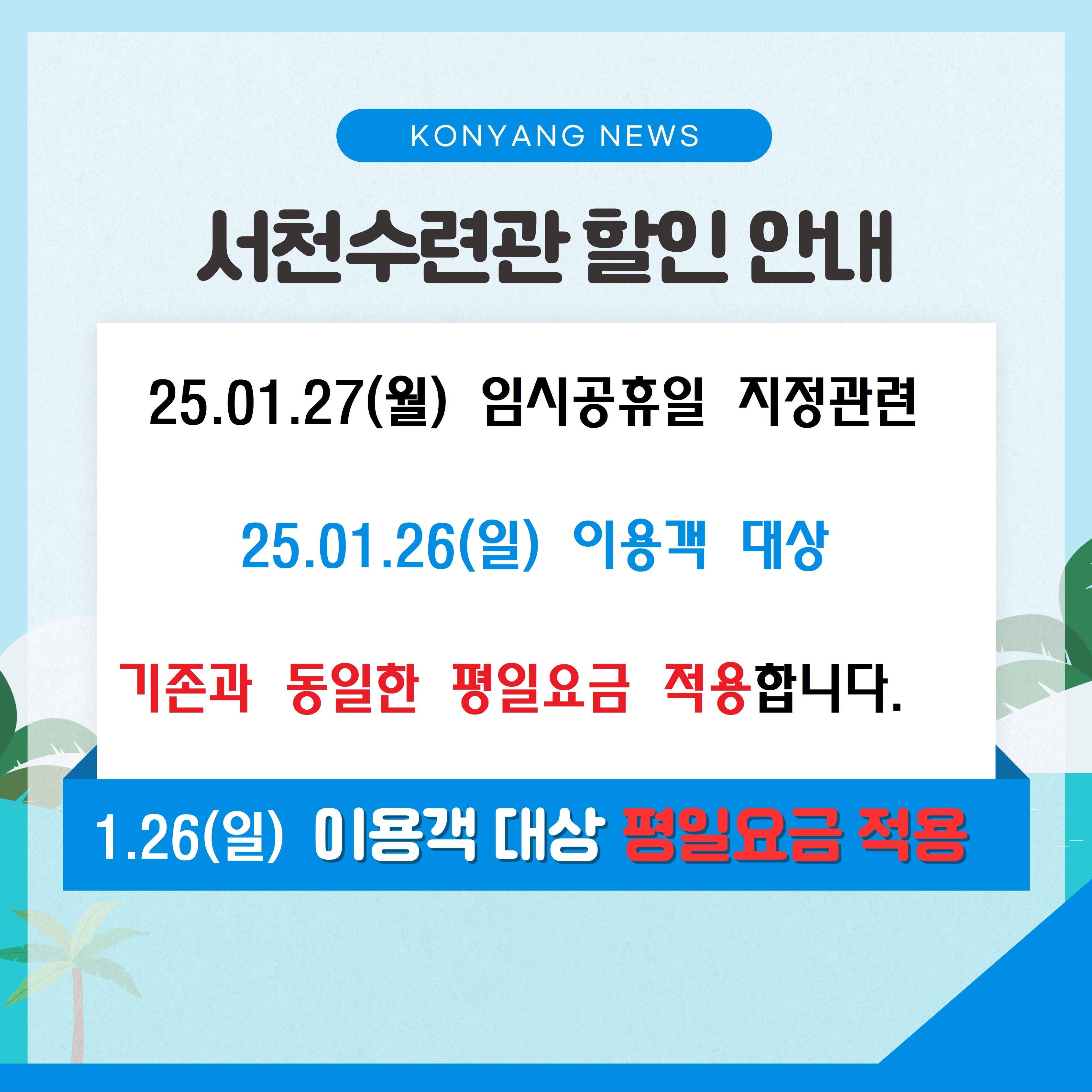 제목 임시공휴일(25.01.27) 지정관련 이용료 할인 안내(01.26 이용객 대상)