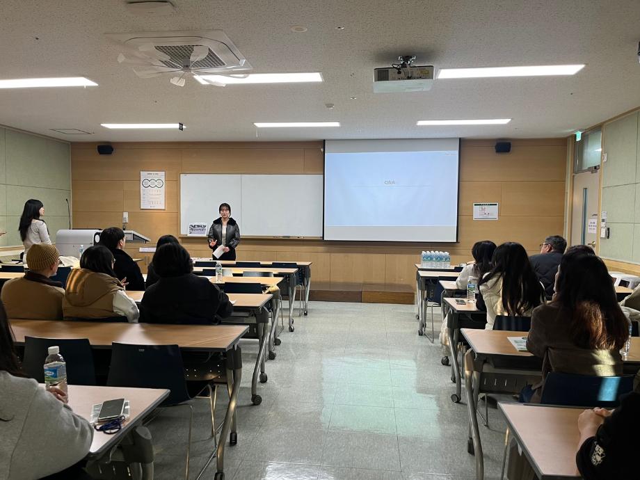 2025학년도 입시를 위해 학과교수님, 건양메이트, 졸업생(산업체전문가) 학과설명회 사진입니다. |