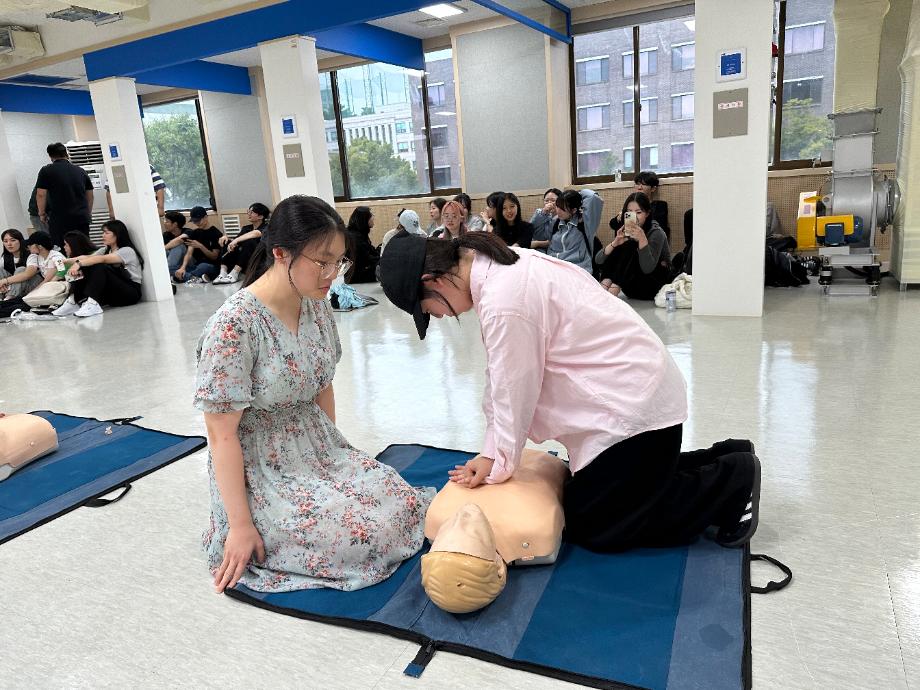 3주차에는 융합디자인학과 학생들도 함께 참여하여 교육 및 실습을 진행하였습니다~ 마지막 주차인 만큼 가슴압박, 인공호흡, 자동심장 충격기(AED)를 모두 실습했습니다. 3주동안 잘 따라준 23학번께 감사드리며 교육을 진행해준 19학번 신수인, 표상운, 권순찬 20학번 배현준 학생에게 무한한 박수를 드립니다~ |