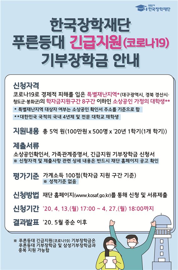 제목 푸른등대긴급지원(코로나19) 장학금 신청 안내