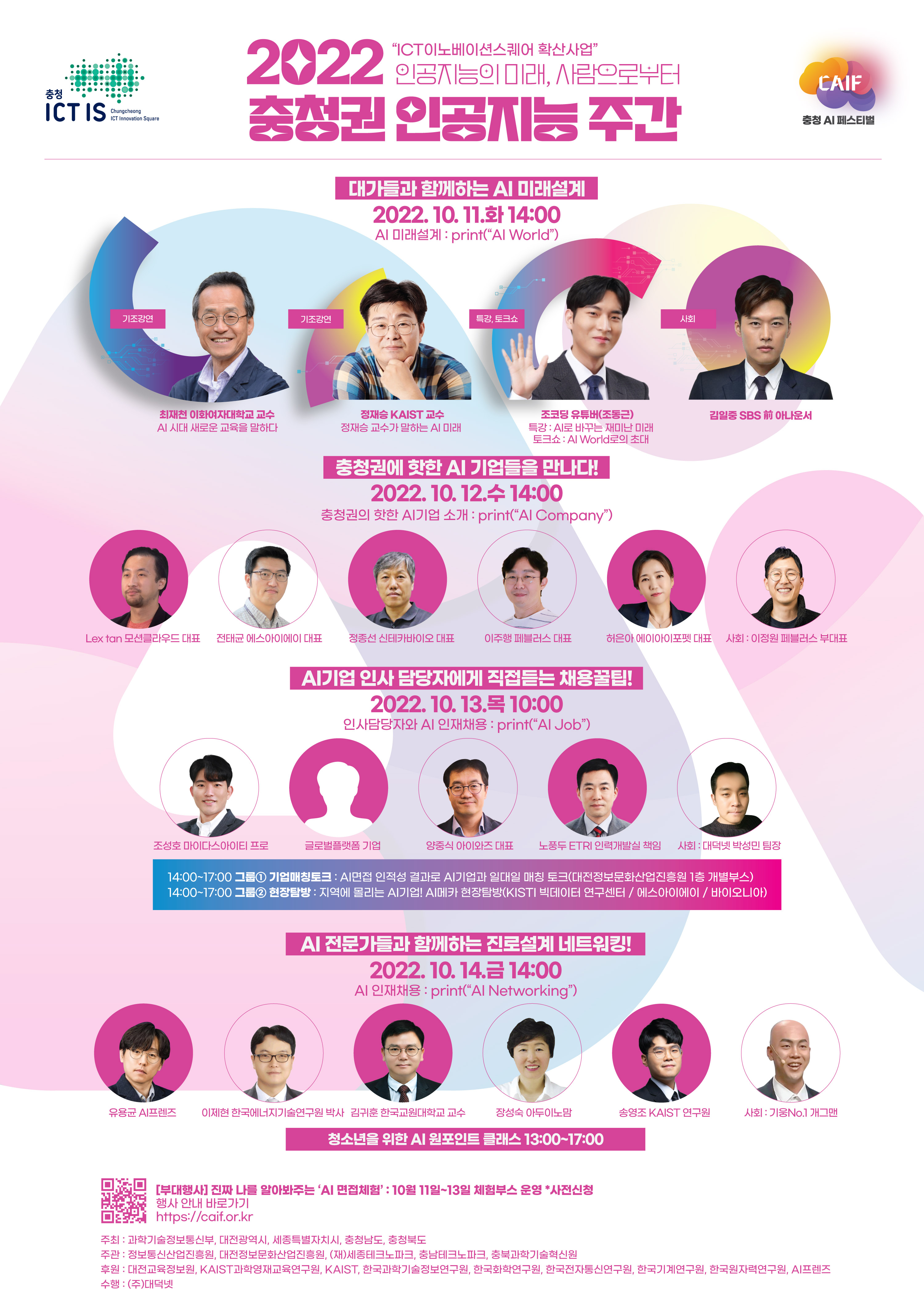 『 2022년 충청권 인공지능 주간 』글의 상세내용을 확인하는 표로 제목, 부서명, 등록일, 조회, 첨부, 내용으로 나뉘어 설명합니다.