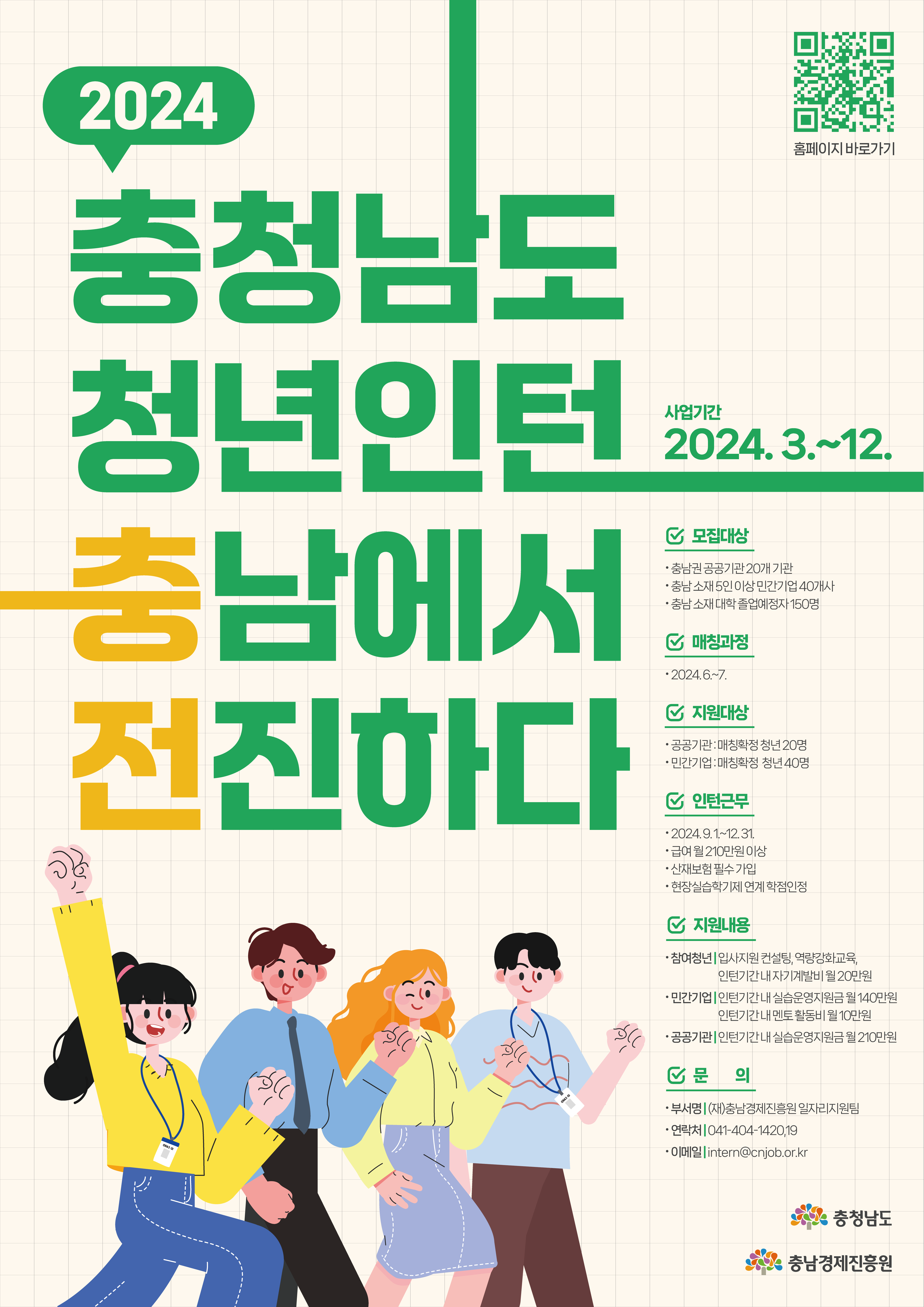 제목 | 2024년 충청남도 청년인턴 사업 청년 모집 안내 | ||||