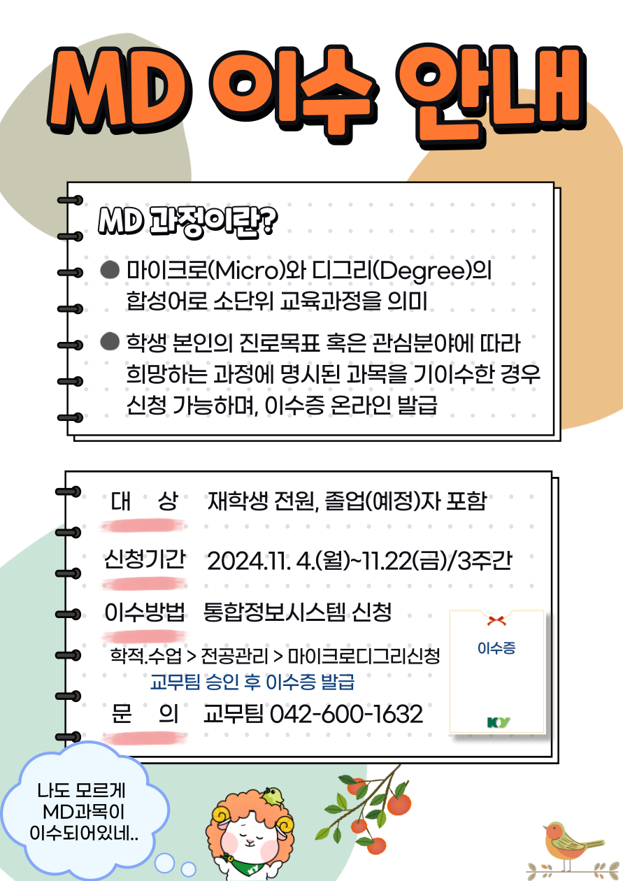 - 학적·수업 ➜ 전공관리 ➜ 마이크로디그리신청 ➜ MD리스트 클릭