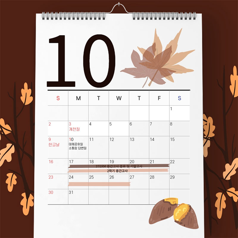 『 10월 학사일정 』글의 상세내용을 확인하는 표로 제목, 부서명, 등록일, 조회, 첨부, 내용으로 나뉘어 설명합니다.