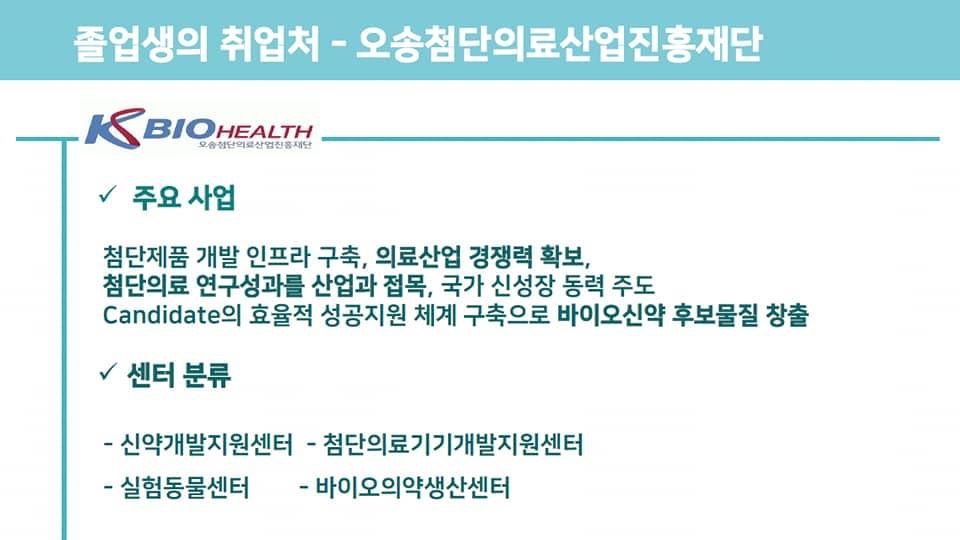 『 의약바이오학과 소개 [취업편] 』글의 상세내용을 확인하는 표로 제목, 부서명, 등록일, 조회, 첨부, 내용으로 나뉘어 설명합니다.