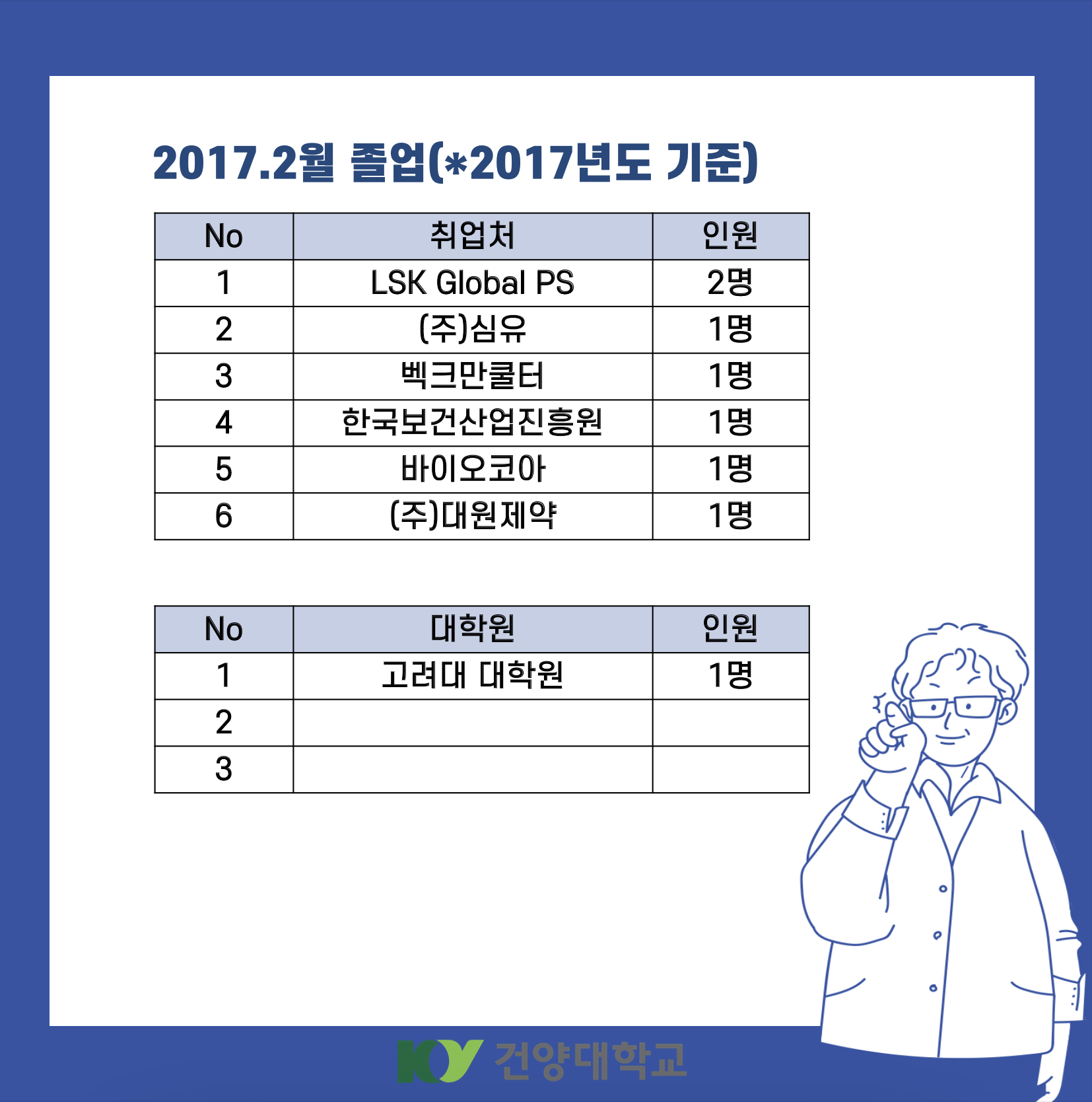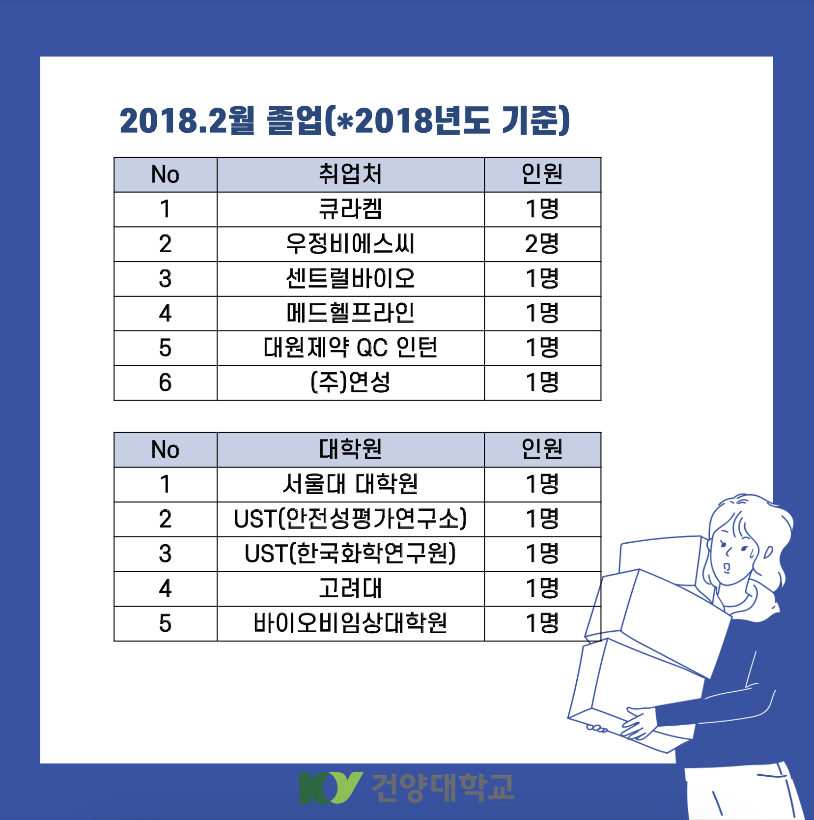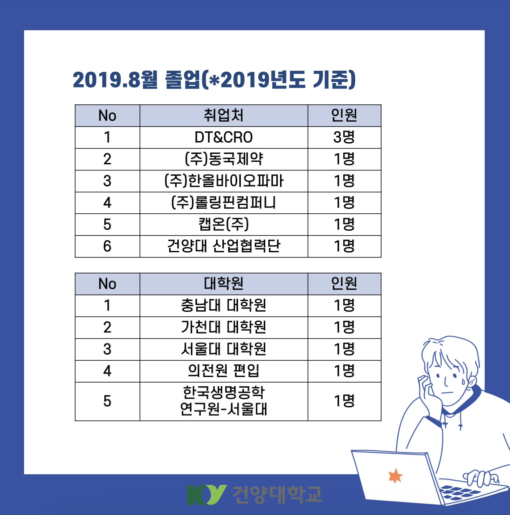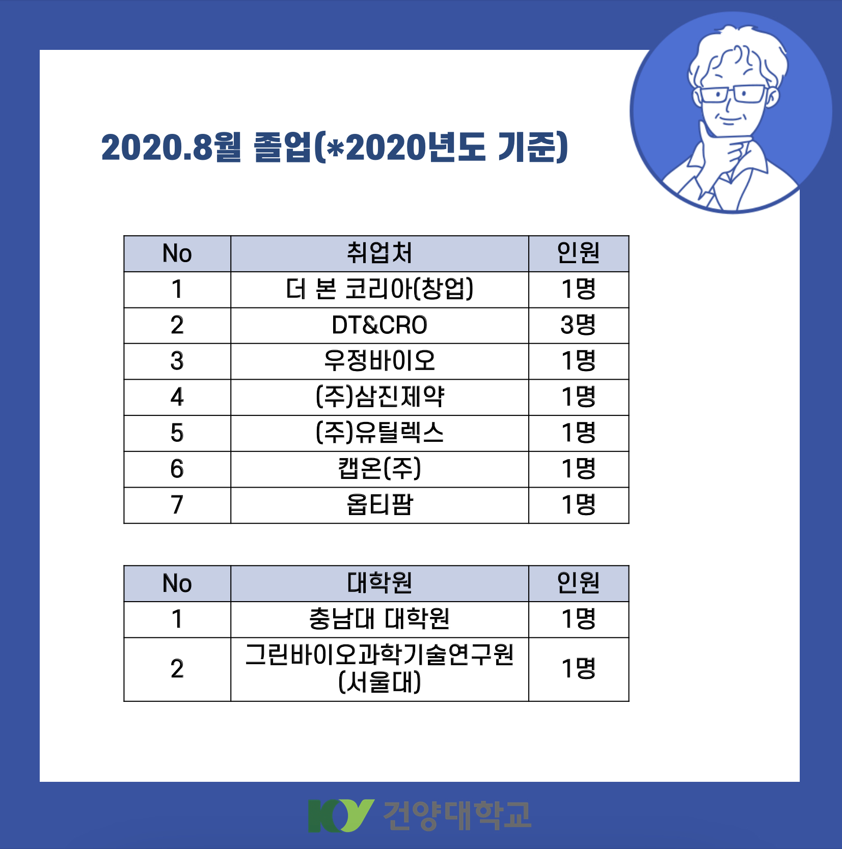『 의약바이오학과 취업현황(17'~20') 』글의 상세내용을 확인하는 표로 제목, 부서명, 등록일, 조회, 첨부, 내용으로 나뉘어 설명합니다.