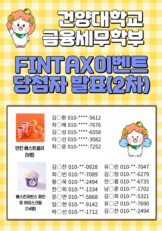 제목 | 2023학년도 신입생 대상 금융세무학부 FINTAX 퀴즈 이벤트(2차) 당첨자 발표 | ||||