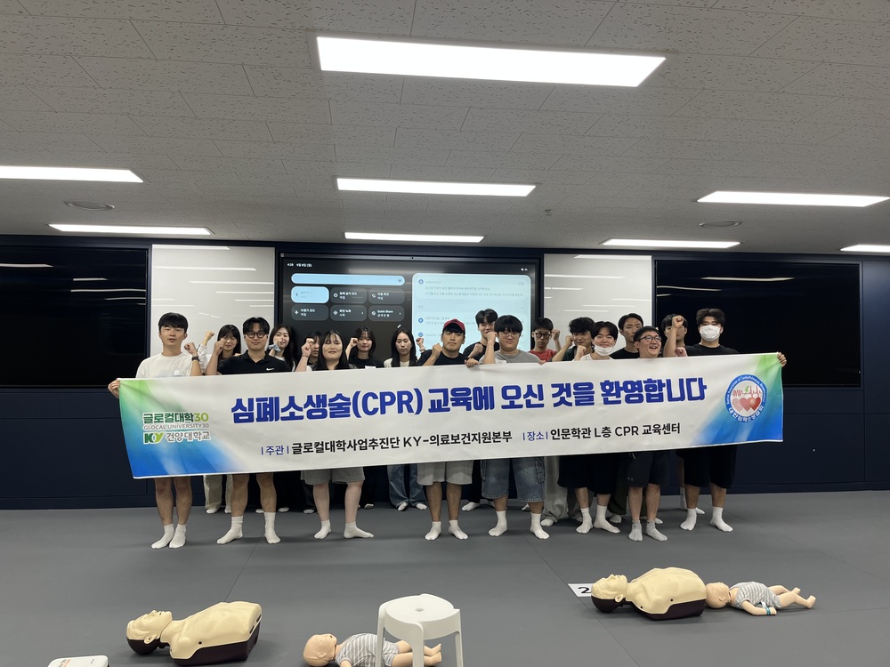 1. 시행목적 전교생 대상 체계적인 CPR 교육을 통해 생명존중 의식과 응급상황 대응 역량을 향상시키고 나아가 지역사회 안전 문화확산에 기여하고자 함 2. 시행대상: 전교생 3. 일정 : 9월 둘째 주부터 화, 수, 목 오전, 오후로 나누어 진행 - 총 3시간 진행(오전: 9:30~ / 오후:13:30~ ) - 월, 금 및 중간고사, DYW 기간 : 논산시민 등 외부인원 및 교직원 실시 또는 재학생 추가 및 보충 운영 4. 장소 : 인문학관 L층(지하) CPR교육센터 5. 학생 특전 - 대한심폐소생협회에서 운영하는 수료증 발급 - H4C 장학금 3만원 지급(수료증 제출자에 한함 / 발급비 1만원) 및 간단한 다과 제공 6. 문의사항 - 교육일정 및 문의사항은 각 학과 사무실 및 글로컬대학사업추진단 KY-의료보건지원본부 문의(041-730-5660) |