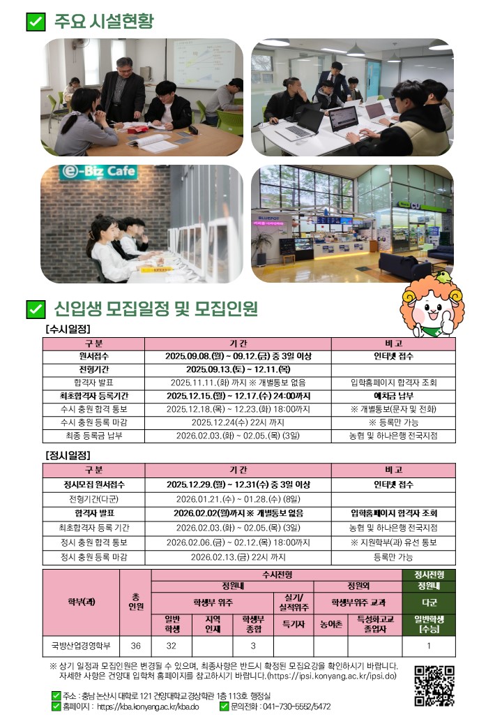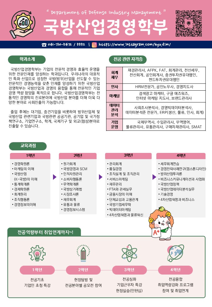 『 2026학년도 국방산업경영학부 입시브로슈어 』글의 상세내용을 확인하는 표로 제목, 부서명, 등록일, 조회, 첨부, 내용으로 나뉘어 설명합니다.