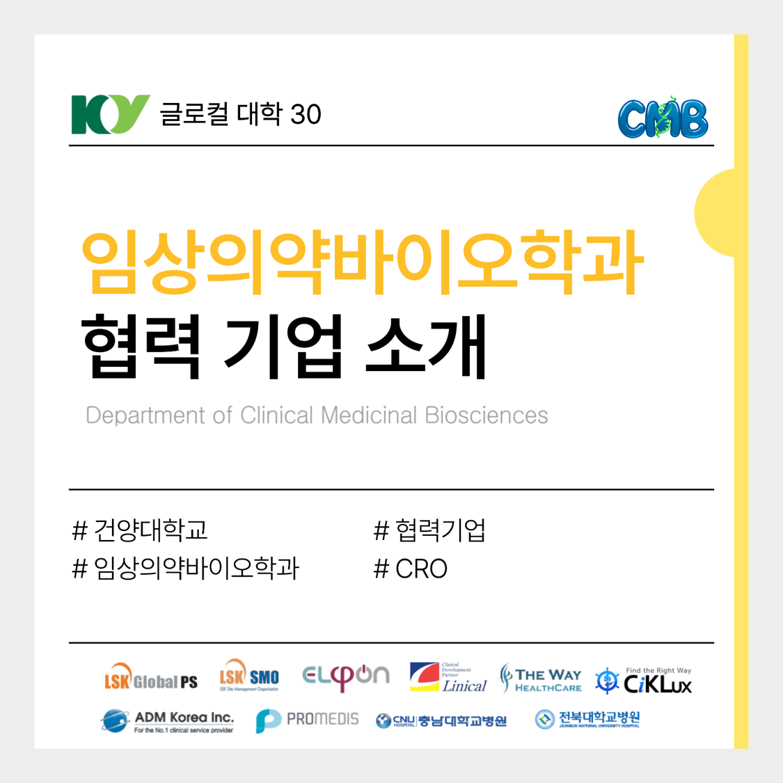『 임상의약바이오학과 협력 기업ㆍ기관 소개 』글의 상세내용을 확인하는 표로 제목, 부서명, 등록일, 조회, 첨부, 내용으로 나뉘어 설명합니다.