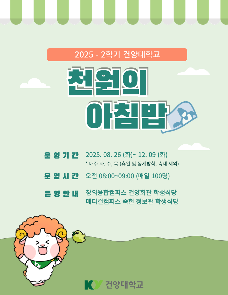 『 [학생 관련] 2025학년도 2학기 천원의 아침밥 운영안내 』글의 상세내용을 확인하는 표로 제목, 부서명, 등록일, 조회, 첨부, 내용으로 나뉘어 설명합니다.