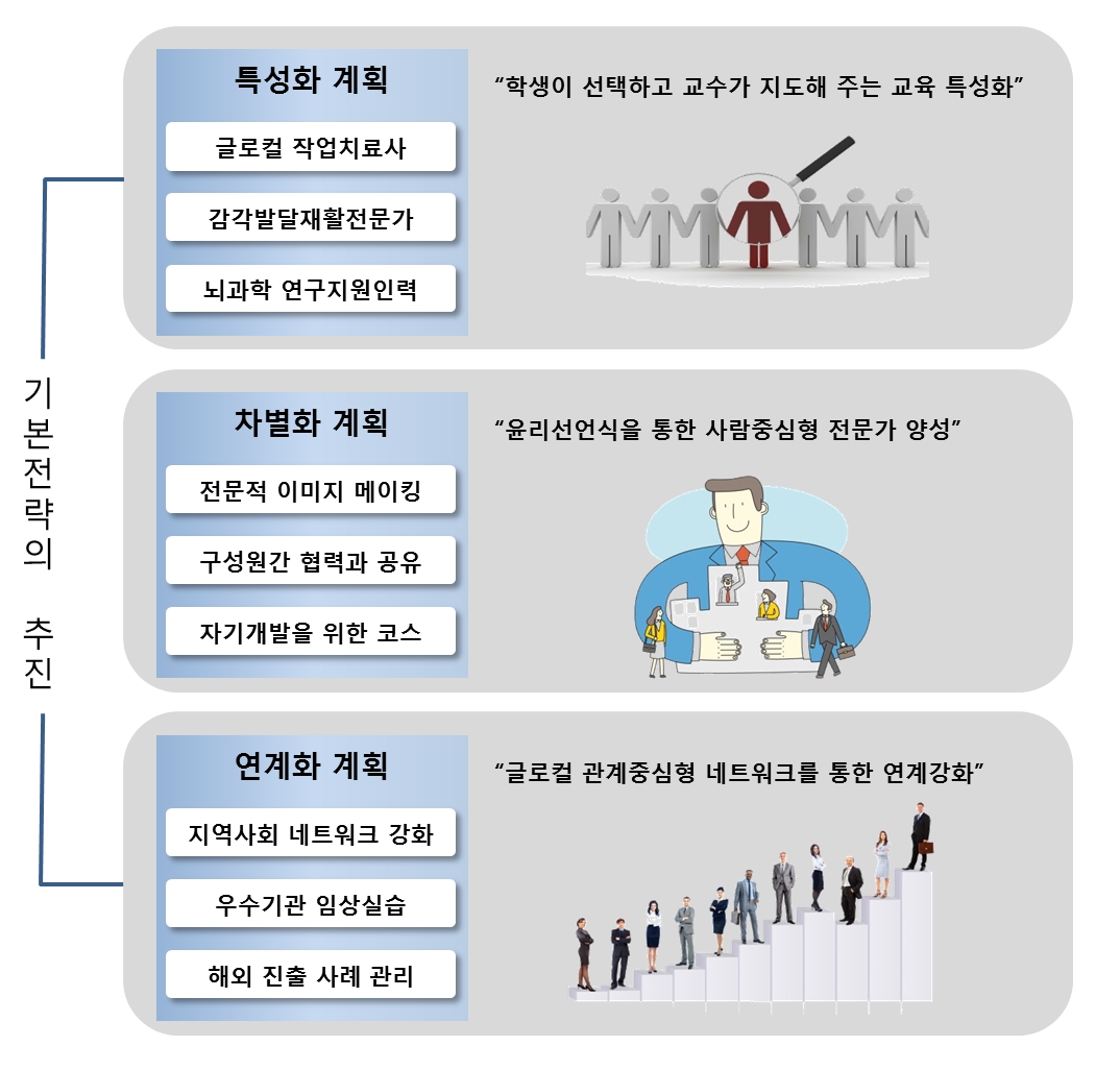 - 학사 및 대학원(석·박사)과정을 연계한 연구역량 및 임상 전문성 증진과 대학교수(교원) 인재 양성